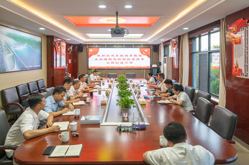 2022年8月18日,湖南省国资委宣传工作处处长田运宏、副处长贺云勇一行赴土谷塘航电枢纽分公司检查指导文明创建工作,6766澳门党群工作部部长杨金平、能源事业部党委委员、副总经理贺意飞及党群综合部负责人陪同检查。