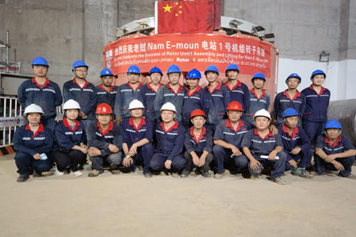 2022年7月30日10时38分,在业主方老挝CSE(Chaleun sekong Energy Co.,Ltd.)公司、监理方ILF(consulting engineers)咨询公司、上海福伊特公司、中国电建广西电力设计研究院及湖南地电老挝南依梦机电安装团队共同见证下,1号机组转子成功吊入机坑,至此,1号发电机组的核心部件已全部吊装就位。