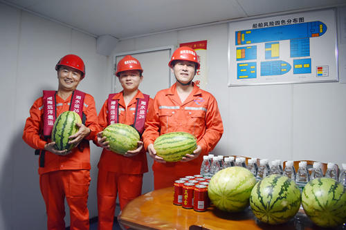 进入夏季,湖南高温天气开启“超长待机”模式。7月27日,湖南远洋集装箱运输有限公司党总支书记、执行董事、总经理黄道平带队前往岳阳城陵矶码头,先后登上“湘远6号”“湘水运26”轮开展检查并慰问船员。船队管理部、支线经营部、安全监督部、岳阳办事处负责人陪同检查慰问。