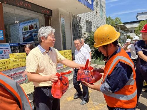 烈日当空,气温节节攀升,近尾洲二线船闸项目正值抢进度、保通航的施工大干时期,为做好广大员工的防暑工作,确保大家安全清凉度夏,7月28日,省交通运输工会主任李国强在省水运投党委委员、副总经理黄超等一行陪同下,亲临近尾洲二线船闸项目部施工现场,走访慰问奋战在一线的工作人员。