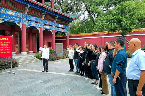 在夹山寺廉政文化教育基地——进京赶考启示园,随着讲解员的讲解,大家了解了明末农民起义领袖李自成从揭竿而起、治军严明,从而建立大顺政权到骄奢淫逸、失去民心,导致迅速瓦解的历史,深入思考“进京赶考”的永恒主题和“人民是阅卷人”的时代课题,深刻领会中国共产党人“六切忌六务必”的精神实质,让全体参观人员接受了一次深刻的“初心”教育和精神洗礼。全体党员在进京赶考启示园还重温了入党誓词。